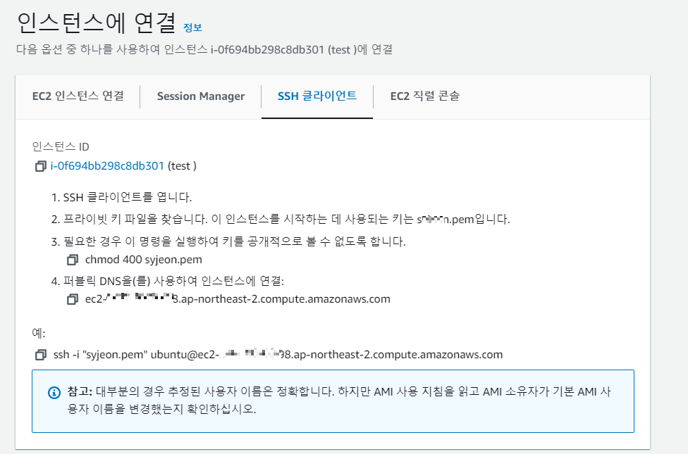이제 인스턴스에 연결하는 과정이다. 연결에는 웹 화면에서 터미널을 여는 방법과 내 터미널에서 인스턴스 터미널에 접속하는 방법이 있다. 처음에는 웹 화면에서만 열 수 있는 줄 알고 엄청 느린 환경에서 작업을 해야했다...