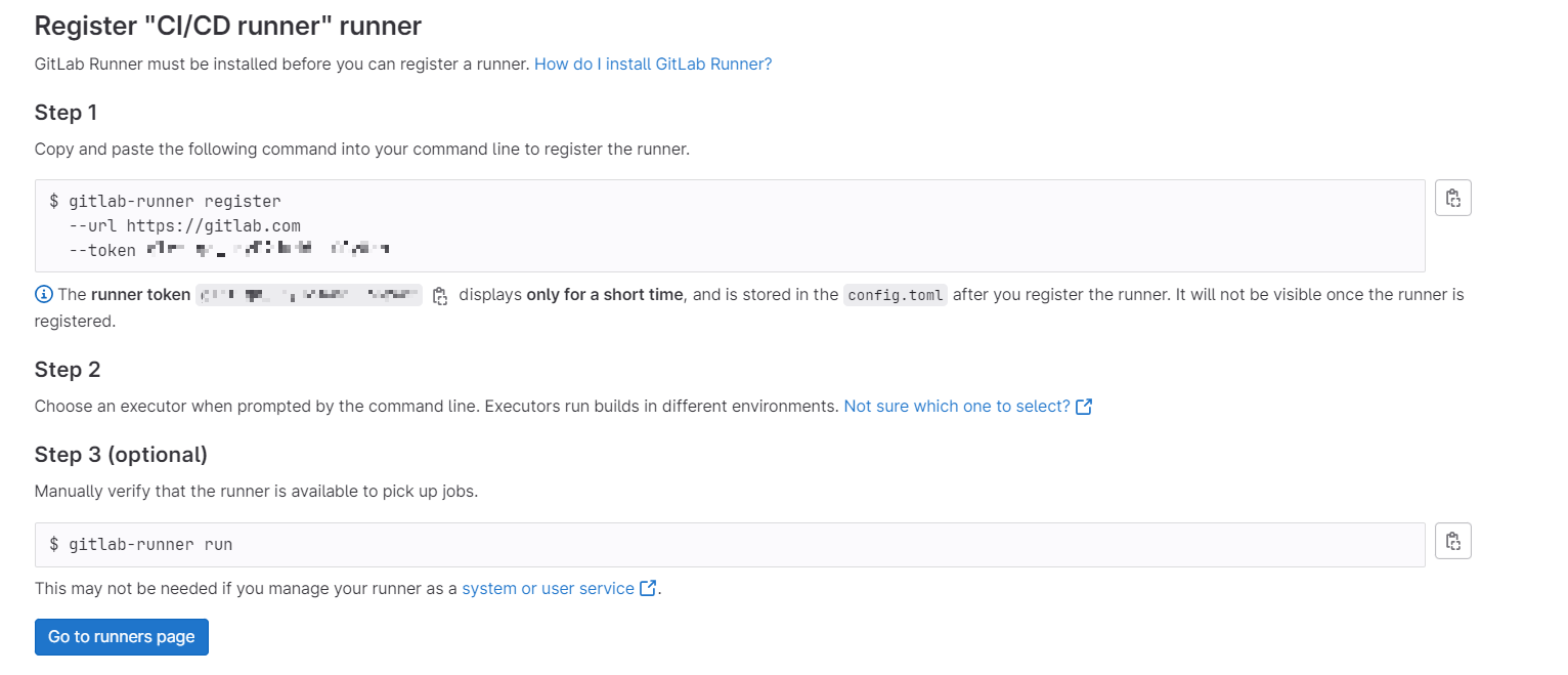 그러면 runner를 등록하는 절차를 gitlab에서 알려주는데 그대로 따라하면된다.