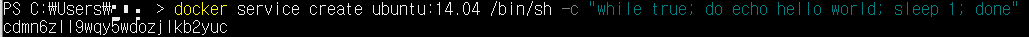 docker service create 명령어로 ubuntu:14.04를 이미지로 한 컨테이너를 생성했습니다.