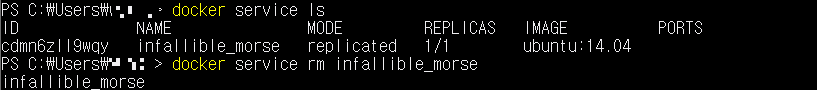 서비스 삭제는 컨테이너 삭제와 비슷합니다.