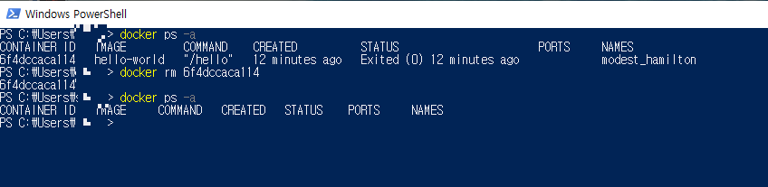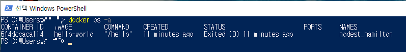 그리고 hello-world의 이미지는 아직 존재하기 때문에 언제든지 다시 컨테이너를 생성할수도있다.
