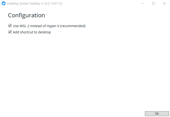다운받은 Docker Desktop Installer를 실행하여 설치 진행